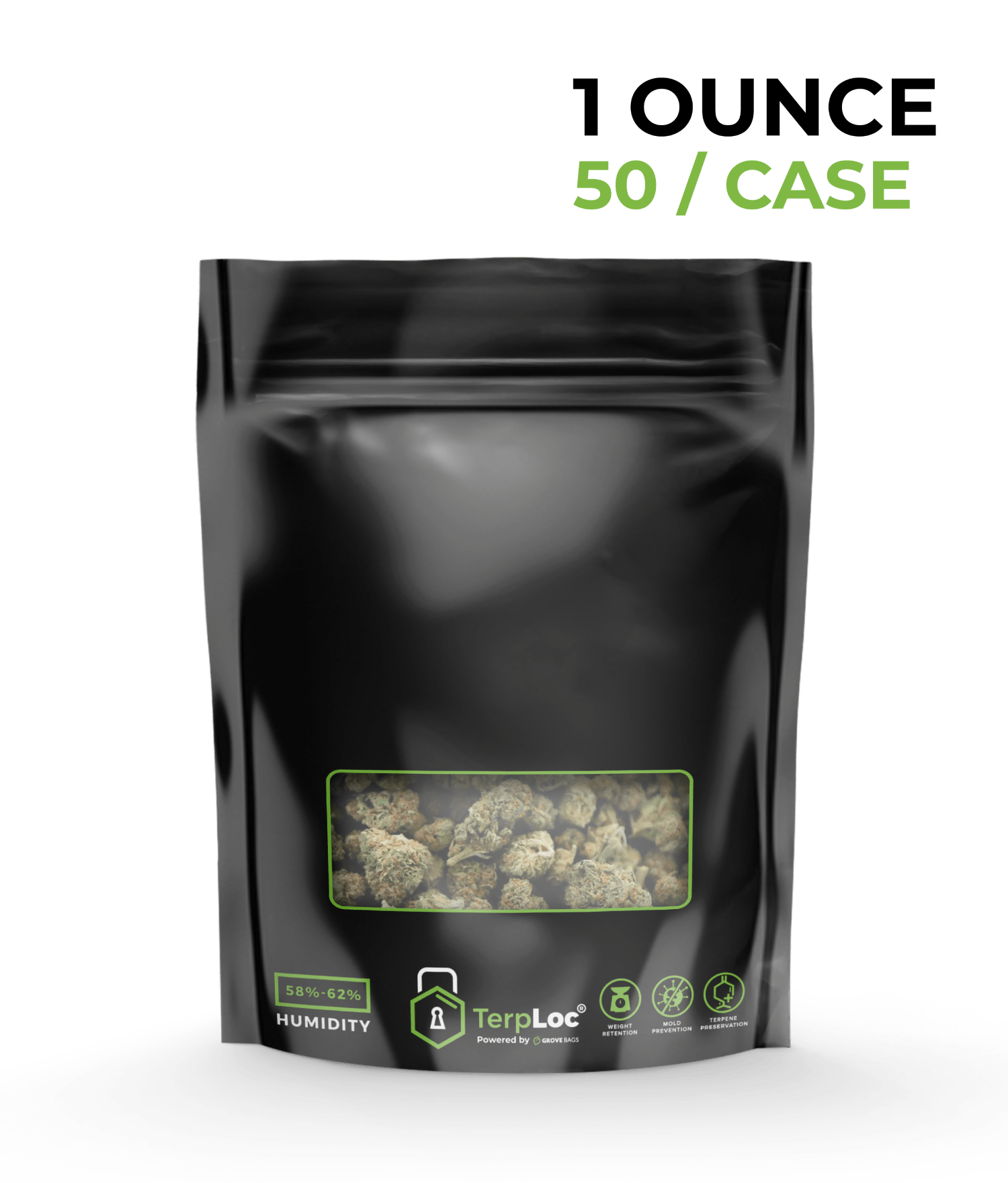 TerpLoc® zippered pouches are designed around the unique physiology of cannabis to maintain weight, prevent mold, and preserve delicate terpene profiles. Once your product is sealed inside, unwanted gasses and water vapor are actively diffused through the pouches’ layers, creating a microclimate with a relative humidity level of 58-62%, limiting oxidation and preventing damage from harmful UV rays. Zippered pouches are available in fully opaque and windowed varieties in multiple sizes.